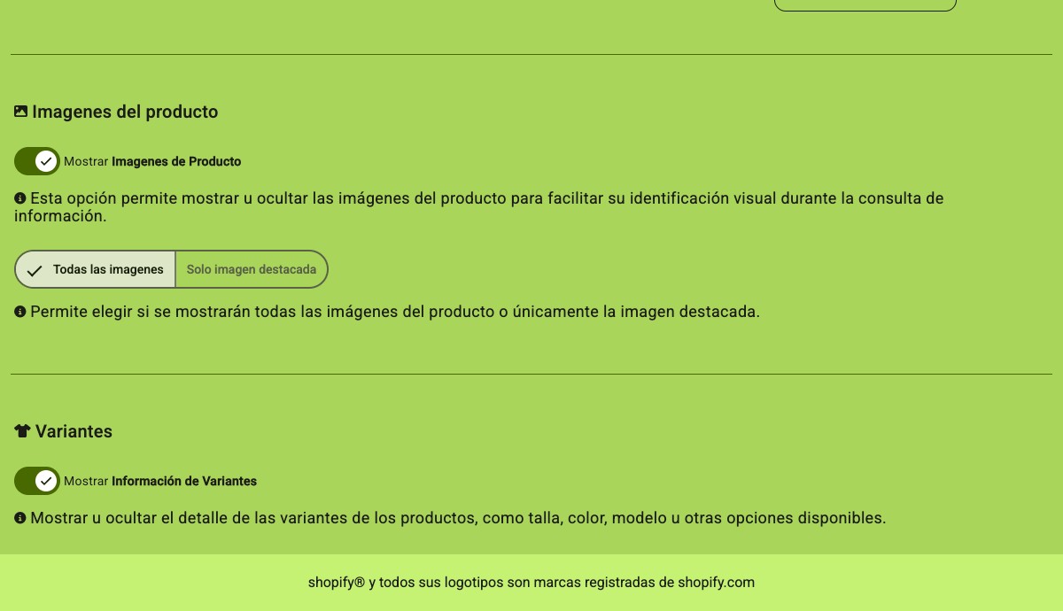 Esta opción permite mostrar u ocultar las imágenes del producto para facilitar su identificación visual durante la consulta de información.