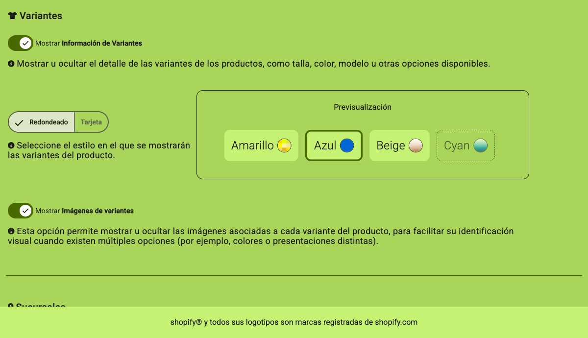 Ajustes a la medida: imágenes, variantes, inventario y sucursales.